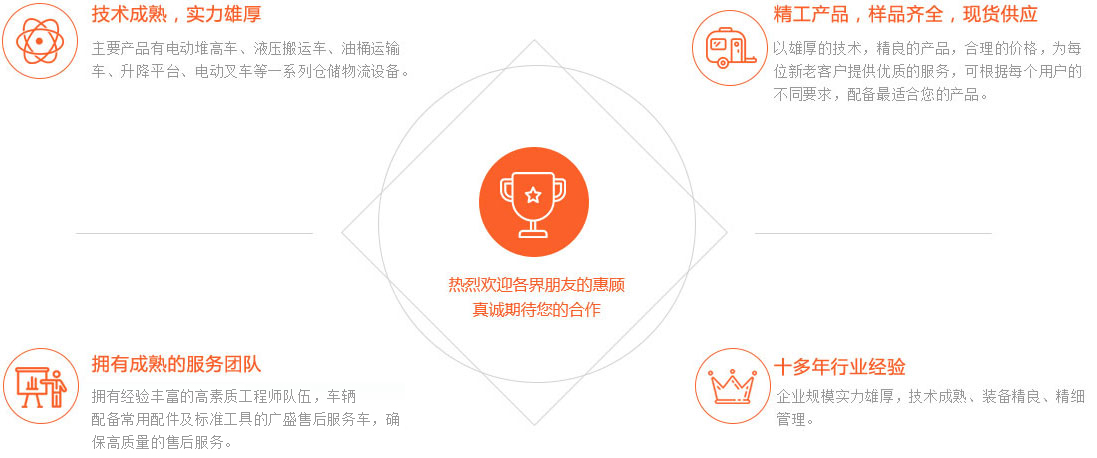 022-26999386天津市廣盛搬運(yùn)機(jī)械有限公司成立于2003年,是在國(guó)內(nèi)倉(cāng)儲(chǔ)搬運(yùn)設(shè)備具有一定地位的專業(yè)生產(chǎn)制造服務(wù)商。主要產(chǎn)品有:電動(dòng)堆高車、液壓搬運(yùn)車、油桶運(yùn)輸車、升降平臺(tái)車、電動(dòng)叉車等一系列倉(cāng)儲(chǔ)物流設(shè)備。十幾年來,我們一直致力于吸收、引進(jìn)世界物流產(chǎn)品與技術(shù),堅(jiān)持不懈,創(chuàng)新發(fā)展,為國(guó)內(nèi)外客戶提供安全、可靠、省力、高效、專用的各類物流搬運(yùn)產(chǎn)品。